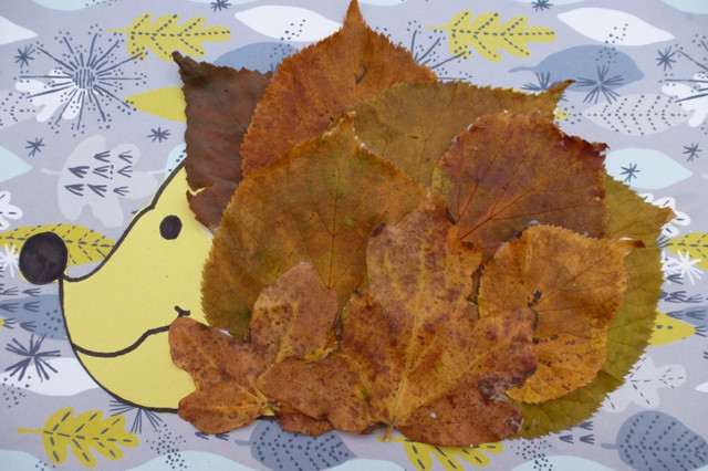 Їжачків можна зробити з листя будь-яких дерев. Щоб зробити їх ще цікавішими та яскравішими можна покласти на "колючки" яблучко чи грибочок з картону