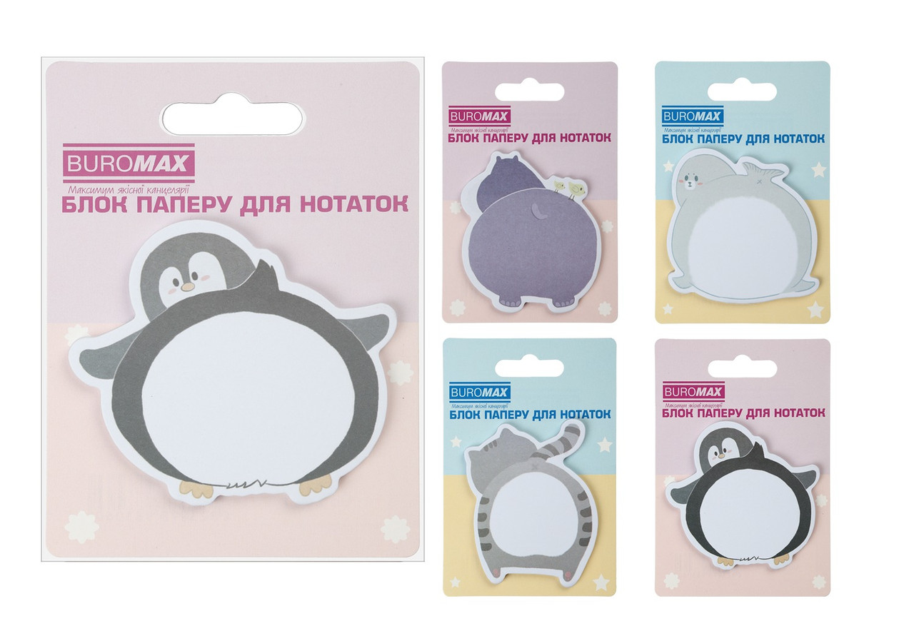 Папір для нотаток з клейким шаром Buromax Кумедні тварини 70х70 мм, 30 аркушів